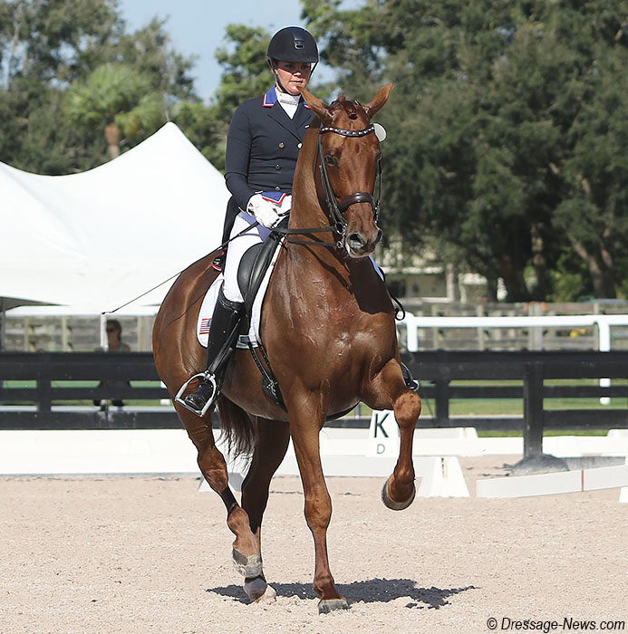 WELLINGTON, Florida, Jan. 4, 2020–The American partnership of Sarah Lockman and First Apple debuted at Intermediate II Saturday in the pair’s first competition since capturing Pan American Games individual gold and United States team silver five months ago.