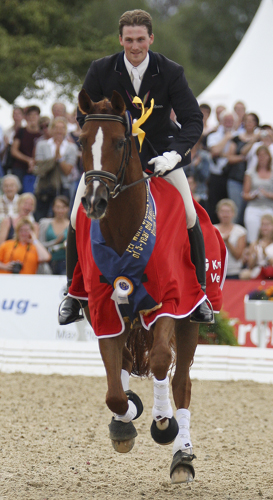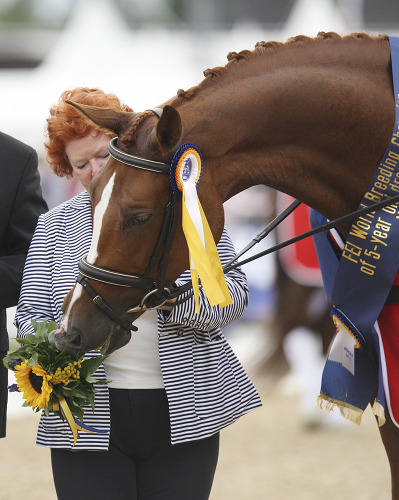VERDEN, Germany, Aug. 6–The exquisite Hanoverian mare, Woodlander Farouche ridden by Great Britain’s Michael George Eilberg, totally dominated the five year old division Saturday to become the first British horse to be crowned world champion.