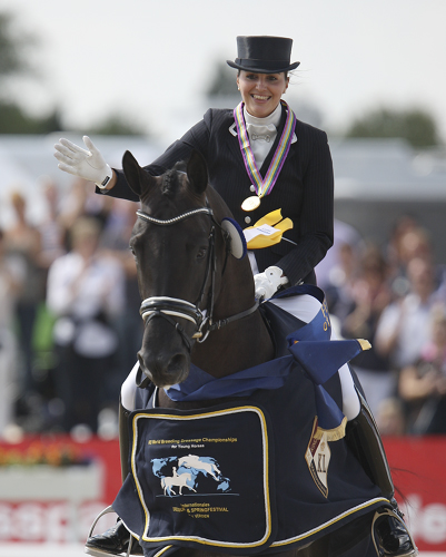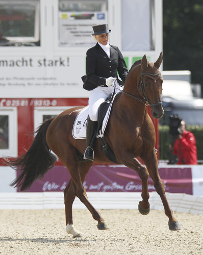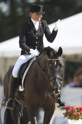 The bronze medal was awarded to the Westfalian gelding St Emilion 2 (Sandro Hit x Ehrenwort) ridden by Dorothee Schneider, also of Germany. This pair received the highest score of the day for submission, 9.00.