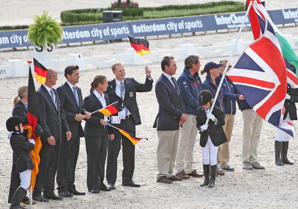 The Netherlands, defending champions from 2009, were in third place after Hans Peter Minderhoud on Exquis Nadine scored 70.912 per cent and Sander Marijnissen on Moedwil 70.578 per cent. The two Dutch riders came into these championships with widely varying experience. For Sander it was his first championship team appearance while Hans Peter is a veteran, with Nadine, including team silver medal from the 2008 Olympics and team gold from last year’s World Equestrian Games .
