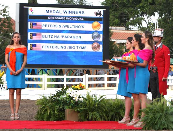 To the delight of the non-Mexicans, the flavor of the show was Mexican, as shown by these ladies leading in the individual medalists for the magnificent awards ceremonies.