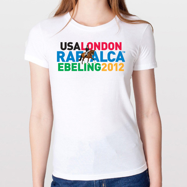 The line consists of two t-shirts and a baseball cap–all made in the USA–as the official merchandise of Jan of Moorpark, California, and Rafalca who are one of four members of the U.S. dressage squad, three for the team and one individual.