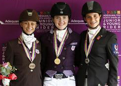 Lindsey Holleger, 17, Whigham, Georgia and Friedensfurst won the gold with a 70.974 per cent, Naima Moreira Laliberte, 16, of Outremont, Quebec and Windbreaker 3 received 70.105 per cent for silver and Rison Naness, 16, of Burbank, California and Venezia won bronze with a 68.921 per cent.
