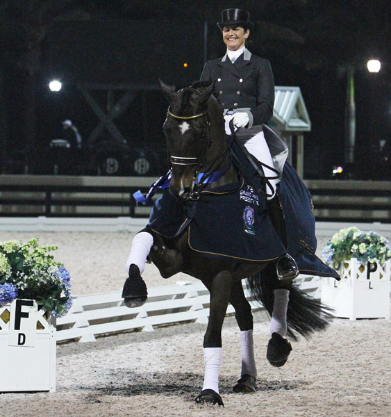 WELLINGTON, Florida, Jan, 10, 2014–Tinne Vilhelmsson-Silfvén and Don Auriello logged their 30th CDI victory Friday night in winning the Adequan Global Dressage Festival World Cup Freestyle to kick off the Swedish Olympian’s fourth Florida winter campaign.