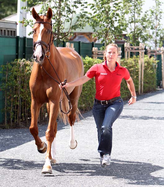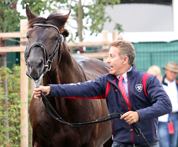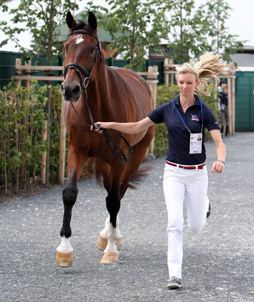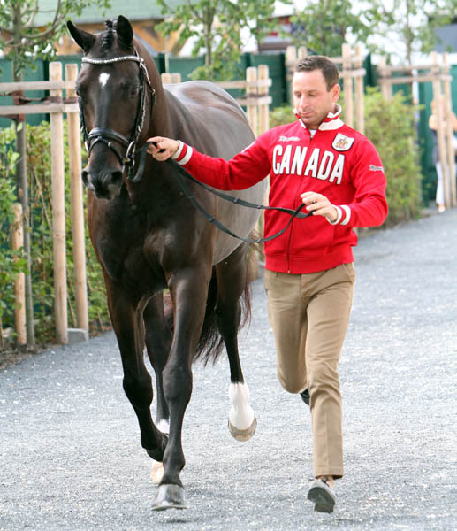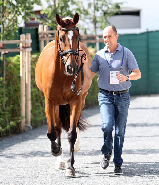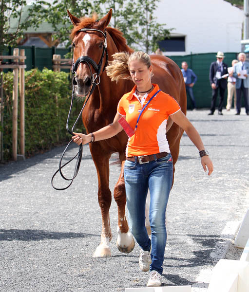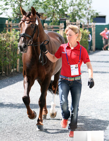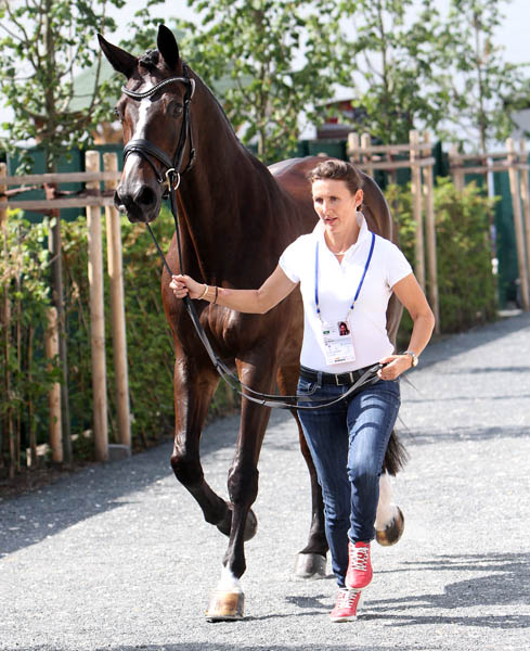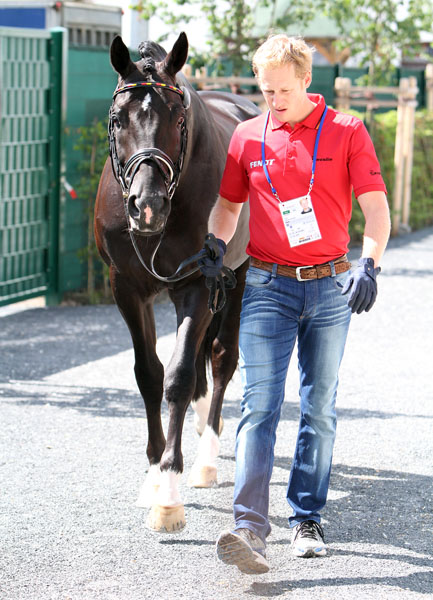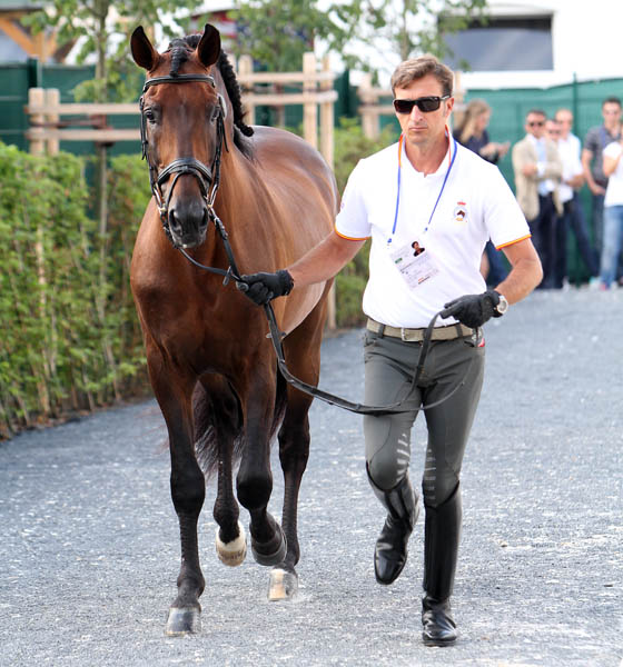 AACHEN, Germany, July 16, 2014–Valegro, Totilas, Damon Hill, Bella Rose, Parzival and the rest of the big guns to compete in the Nations Cup passed the veterinary inspection at the World Equestrian Festival Wednesday. Painted Black ridden by Morgan Barbançon of Spain was held over until Thursday morning.
