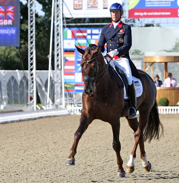 HICKSTEAD, England, Aug. 3, 2014–Carl Hester rode Dances With Wolves to victory at the CDIO3* in the first Grand Prix Freestyle for the 12-year-old gelding.