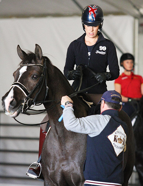 At a training warmup session in the Thomas & Mack Center for the 30th year of the annual individual global championship, Charlotte and the 13-year-old KWPN gelding who captured the title in Lyon, France a year ago brought cheers from the crowd of about 4,500 fans who filled about a third of the seats that will be filled for the Grand Prix and the Freestyle on Saturday.