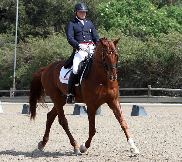 DEL MAR, California, April 25, 2015–Jan Ebeling and FRH Rassolini posted their first victory when the pair won the Del Mar National World Cup Grand Prix Freestyle Saturday night and plans to head to Europe to train and compete over the summer.