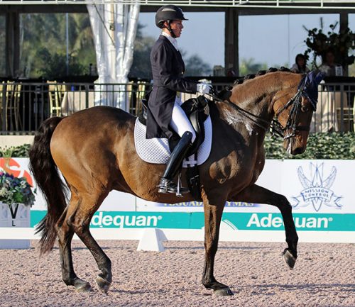 WELLINGTON, Florida, Feb. 8, 2017–Charlotte Jorst and Kastel’s Nintendo won the Adequan Global Dressage Festival CDI3* Grand Prix Wednesday for the second victory of the year for the American and her KWPN stallion.