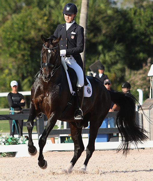 WELLINGTON, Florida, Feb. 17, 2017–Adrienne Lyle rode Salvino on Friday in the first Grand Prix for the 10-year-old stallion bought by an American syndicate as a prospective team horse for the Olympic rider.