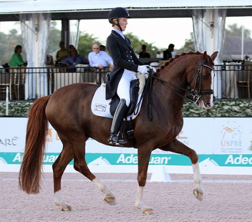 WELLINGTON, Florida, Feb. 25, 2017–Arlene “Tuny” Page rode Dr. House to victory in the Adequan Global Dressage Festival World Cup Grand Prix Special Saturday in the Big Tour debut for the 12-year-old Oldenburg gelding.