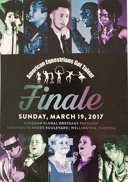WELLINGTON, Florida, Mar. 18, 2017–The finale of the ambitious grassroots American Equestrians Got Talent to raise $600,000 for American high performance dressage will be staged at the Adequan Global Dressage Festival grounds Sunday night.