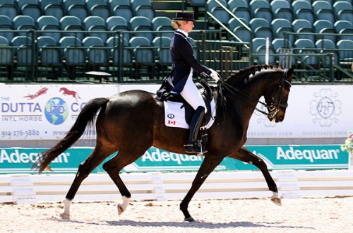 WELLINGTON, Florida, Mar. 22, 2017–The husband and wife Team Irwin gave Canada the lead over the United States and Spain after the first of two days of the CDIO3* Nations Cup Wednesday. Tina Irwin on Laurencio and Jaimey on Donegal V both posted personal best scores at Prix St. Georges to more than make up for bonus points awarded to the all-Grand Prix American team.