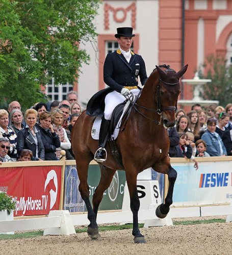 Dorothee and the 11-year-old German Sport Horse stallion won the Louisdor Prize, the German Developing Grand Prix Championship last December.