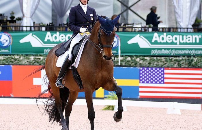 In the all-Swedish affair at the top of the freestyle, Paulinda Friberg on Di Lapponia T were second on 76.650 per cent and Minna Telde on Isac placed third on 76.500 per cent.
