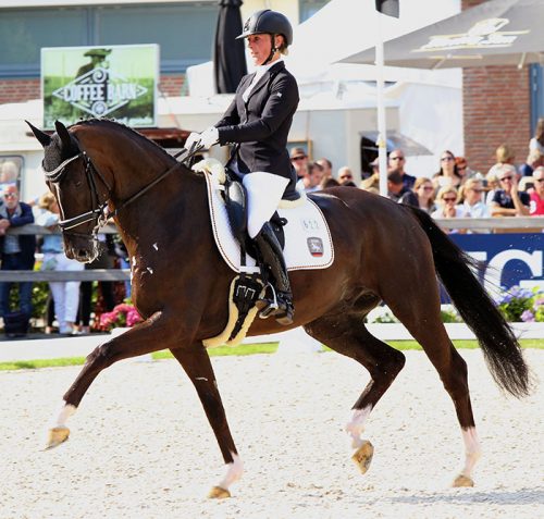 ERMELO, Netherlands, Aug. 6, 2017–Lordswood Dancing Diamond won the 6-year-old World Young Horse Championship, the Hanoverian gelding ridden by Anne-Kathrin Pohlmeier of Germany to a score that included two 10s.