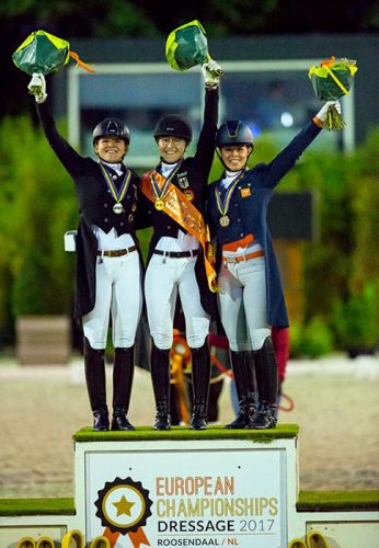 ROOSENDAAl, Netherlands, Aug. 13, 2017–Germany’s Hannah Erbe and Carlos won European Championships Young Rider Freestyle gold Sunday for a sweep of the three gold medal events.