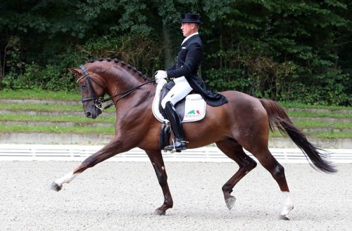 SCHENEFELD, Germany, Aug. 20, 2017–Holga Finken on Don Frederic won the Nürnberger Burg-Pokal Prix St. Georges Special Sunday to earn a start in the final in December of the German championship for small tour horses aged seven to nine years.