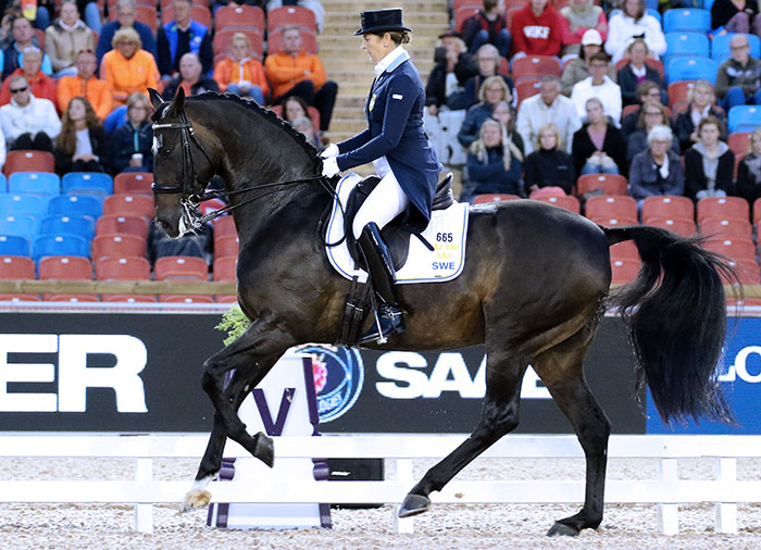 Tinne Vilhelmson Silfvén, Sweden’s seven-time Olympian, gave the crowd good reason to cheer when she rode Paridon Magi to a score of 72.857 per cent that put the pair in fourth place individually.