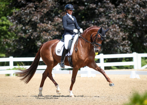 WAYNE, Illinois, Aug. 25, 2017–Andrea Woodard, an American raised in Denmark before moving back two years ago, rode her Oldenburg mare Ravenna to victory in the six-year-old preliminary test Friday, the rider’s first ever U.S. young horse championships.