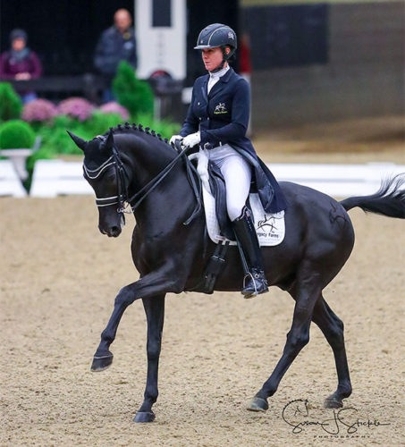 LEXINGTON, Kentucky, Nov. 11, 2017–Melissa Taylor, in her first appearance at the US Finals, rode Ansgar to victory in the Intermediate I Freestyle open Saturday a day after placing third in the Int. 1 Championship.