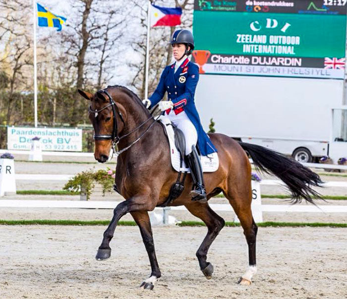 NIEUW en ST. JOOSLAND, Netherlands, April 6, 2018–Charlotte Dujardin and Mount St. John Freestyle produced a stunning performance for victory by a big margin in the Outdoor Zeeland CDI3* Grand Prix Freestyle Friday in the first international event for the British partnership.