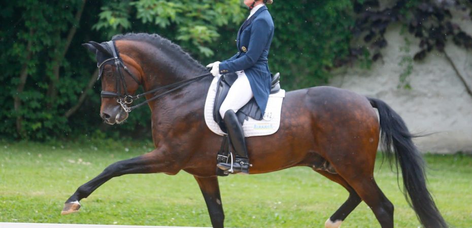 Canada’s Brittney Simpson on the 13-year-old KWPN stallion Kartsevo Goldfinch was runner-up on 63.935%, just 0.043% behind the leader.