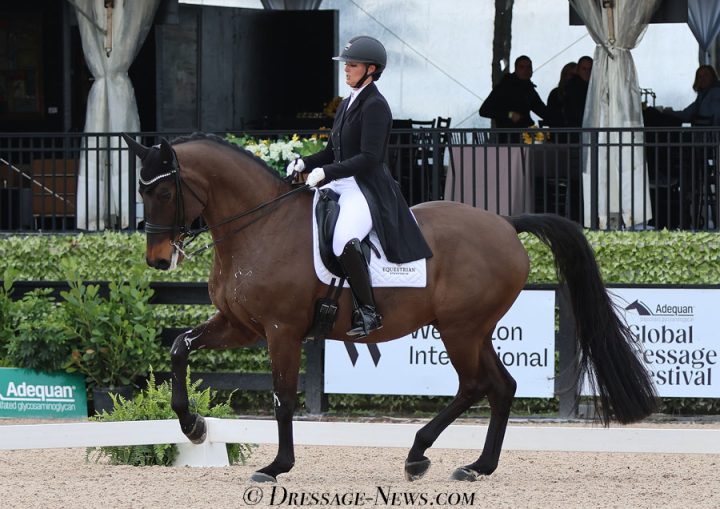 Rebecca Cohen rides 11-year-old Jameson to victory in opening competition of Lövsta Future Challenge for developing Grand Prix, fifth year of series in the expanded lineup of developing dressage competitions at Wellington’s Global Dressage Festival…