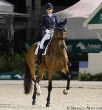 That is possibly until next week when Geñay Vaughn of Elk Grove, California on Gino, her 13-year-old KWPN gelding, is expected to compete at Del Mar, the last World Cup event on the West Coast. A win there would give her a maximum of 60 points and a ticket to the Final. Runner-up would give her a total of 57 points.
