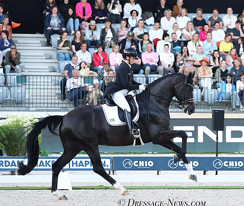 Frederic Wandres on the 15-year-old gelding Bluetooth OLD, Paris Games gold medal teammates, was runner-up on 77.628%