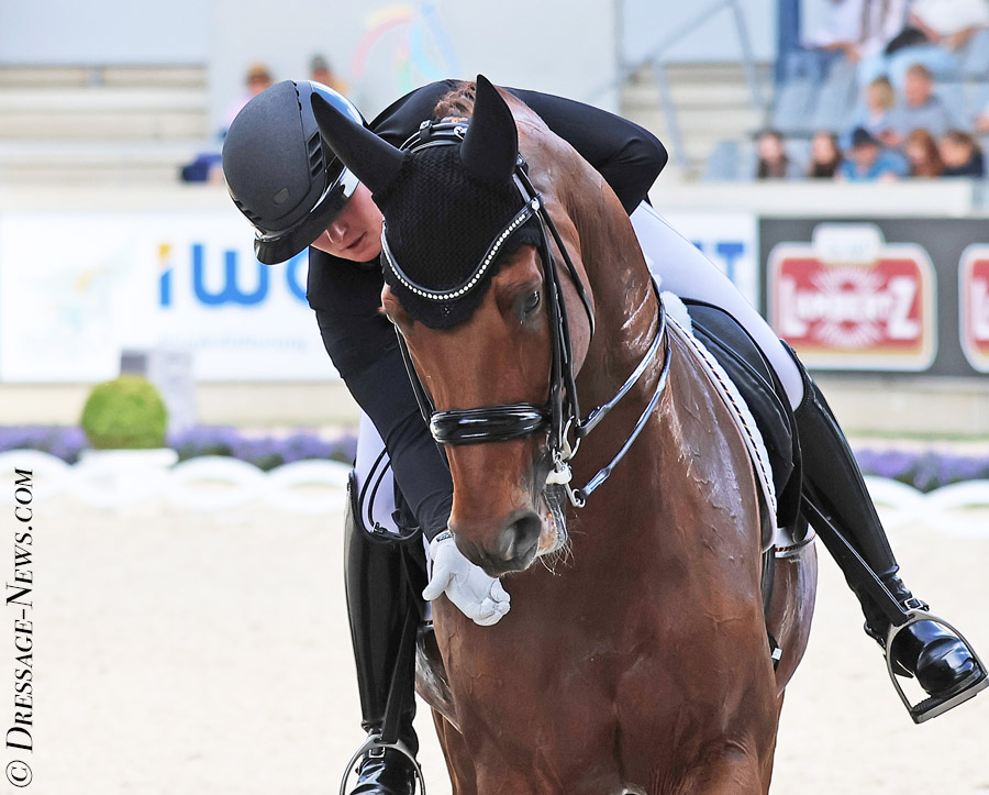 “I was very lucky because he was my first Grand Prix horse. It was a big chance for me to show my first Intermediaire II and also then in the U-25 classes and I could gain a lot of experience with him,” Katharina told DRESSAGE-NEWS.com. “I’m very very thankful to the Kane family and to Don Angelo. He’s at my parents place in retirement. He’s 25 now, he’s looking super and is feeling very good and I hope he will have a long retirement.”