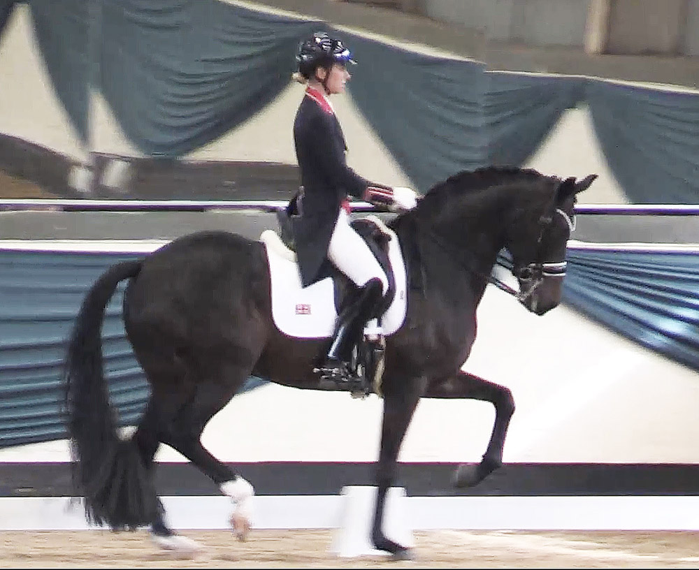 Charlotte and the 11-year-old Oldenburg gelding scored 72.830% that included almost 50 marks of 8 and one 9 from the panel of five judges, with passage heavy test generally scoring highest of the 36 movements. The general impression received one mark of 8.5, three 8s and one 7.5.