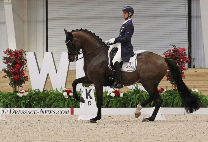 Canada’s Brittany Fraser-Beaulieu on the 11-year-old gelding Jaccardo was runner-up on 71.304%. The duo also have a qualifying win, at Toronto a month ago that opens up the possibility of earning one of three spots assigned to North American. That would make her the first rider from her nation in the annual championship since 2013. Brittany was on All In on Canada’s team at the Tokyo Olympics, the World Equestrian Games in 2018 and the silver medal squad at the 2015 Pan American Games.
