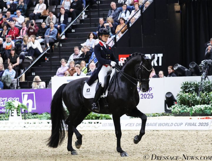 LONDON, Dec. 18, 2025–Charlotte “Lottie” Fry and her World Cup champion Glamourdale led a British sweep of the top three placings on a score above 80% in the London International World Cup Grand Prix Thursday.