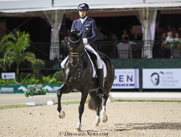 The ride by Marcus on the 12-year-old Jane, his mount on the U.S. team at the Olympics in Paris in 2024, was scored at 73.587%, just 0.43 points behind the winner in the mare’s first competition at night under lights and before more than 1,000 spectators.