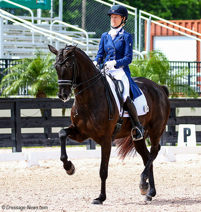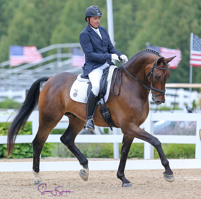 WAYNE, Illinois, Aug. 20, 2020–Alice Tarjan on Candescent began her campaign for the U.S. Grand Prix Championship with a win in the Grand Prix Thursday while Christopher Hickey on Stenager’s Wyatt Earp topped the Developing Prix St. Georges…