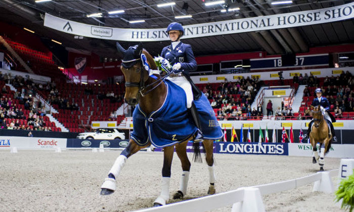 HELSINKI, Oct. 20, 2018–Emma Kanerva and Dambacu NL won the CDI3* Gand Prix Freestyle Saturday to complete a double victory for the Finnish combination in the first year at Big Tour….
