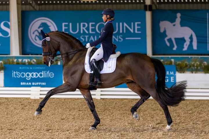 Anna Buffini debuts Fiontini in the United States to place second behind top ranked American Steffen Peters on Suppenkasper at Del Mar CDI3* Grand Prix, first competition for the Danish Warmblood mare in more than two years…