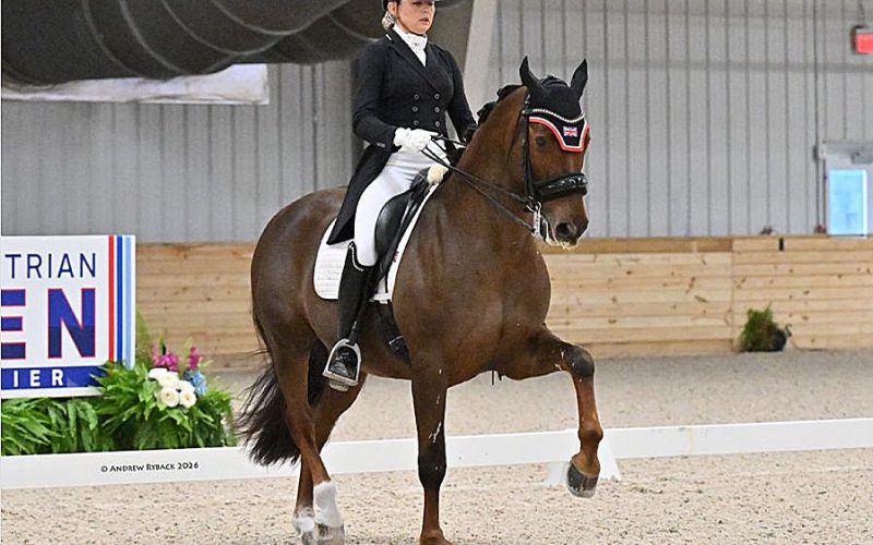 By KENNETH J. BRADDICK WELLINGTON, Florida, Jan. 22, 2026–Great Britain’s Susan Pape on Harmony’s Giulilanta posted a personal best score to edge out U.S. Olympic partnership of Marcus Orlob on Jane to win the Global Dressage Festival CDI5* Grand Prix Thursday night. Susan and the 15-year-old Dutch-bred mare owned by Susan and Harmony Sporthorses of