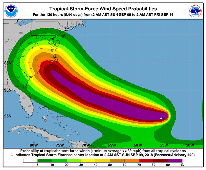 The World Equestrian Games may feel the impact of Tropical Storm Florence in the Atlantic that could develop into a major hurricane that is projected to hit the Carolina coast about 220 miles/350km from Tryon by next Thursday….