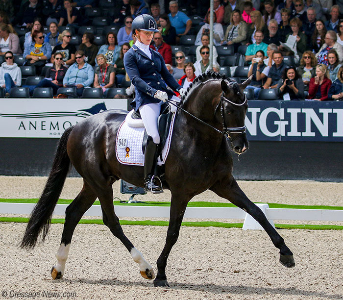 ERMELO, Netherlands, Aug. 3, 2019–Jovian, a Dutch-bred stallion ridden by Andreas Helgstrand, won the World Young Horse five-year-old championship Saturday. Andreas also took bronze on Queenparks Wendy while Secret with Sweden’s Jessica Lynn Thomas aboard earned silver….