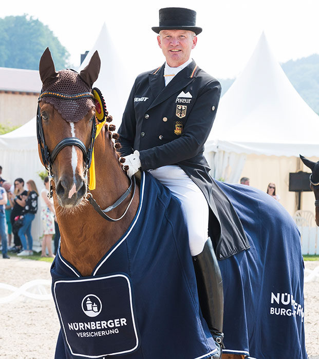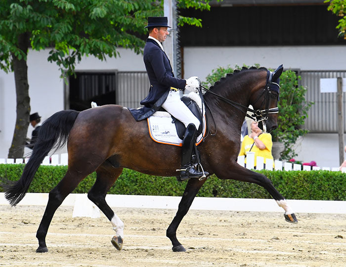 BALVE, Germany, June 9, 2018–Hubertus Schmidt rode Bonamour to victory in the Nürnberger Burg-Pokal Prix St. Georges Special Saturday to earn a start at the final of horses aged seven to nine years at the final at Frankfurt in December…