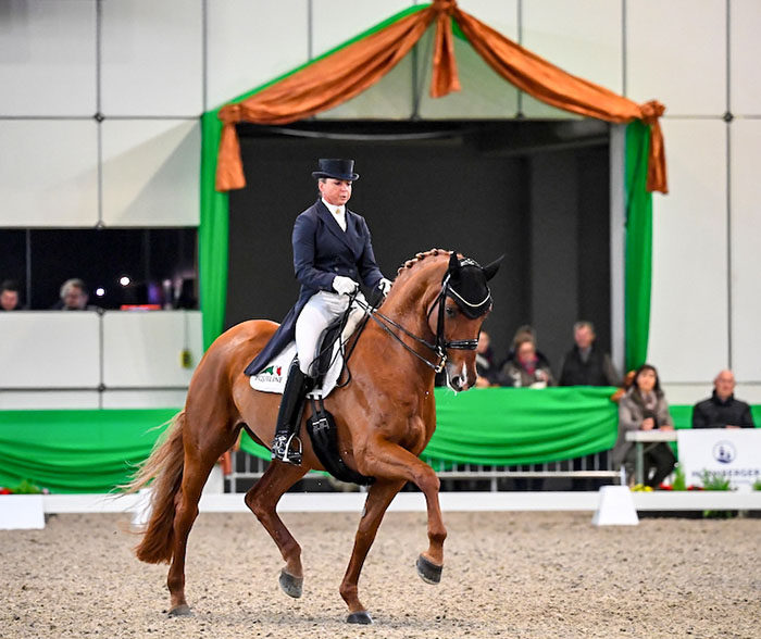 FRANKFURT, Germany, Dec. 15, 2018–Dorothee Schneider rode the eight-year-old First Romance to the Nürnberger Burg-Pokal championship of Prix St. Georges Special Saturday, the second small tour title for the German Olympian…