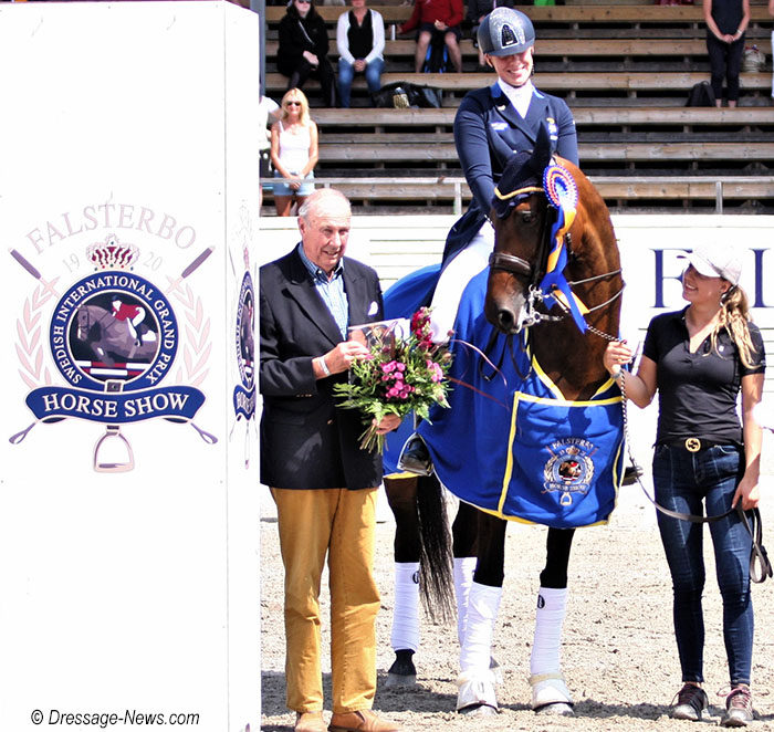 FALSTERBO, Sweden, July 12, 2019–Denise Ljungkvistand and her mare Soega won the CDI3* Grand Prix Friday, the first victory in the Swedish pair’s first year out of the Under-25 division….