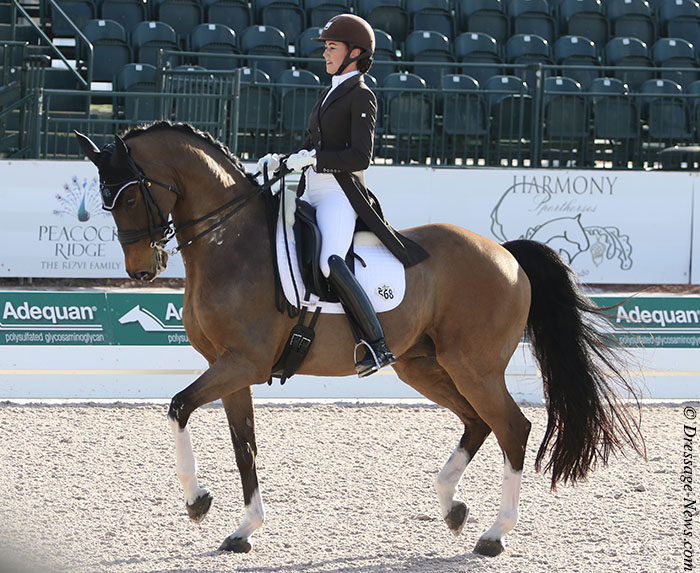 WELLINGTON, Florida, Feb. 9, 2019–P.J. Rizvi, recovering from a torn calf muscle, and Breaking Dawn won the Adequan Global Dressage Festival CDI3* Grand Prix Freestyle Saturday in the first musical performance victory for the pair that competed for the time…