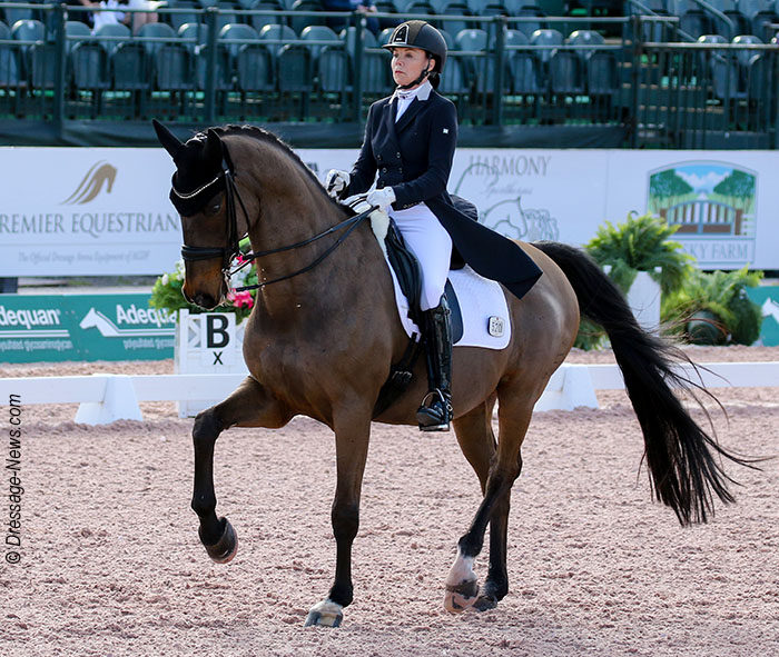 WELLINGTON, Florida, Jan. 12, 2020–Emegardens Marquis, loaned to Great Britain for the 2011 team that won its only European Championship gold medal, is competing in Florida at the age of 21 as one of the oldest active Big Tour horses…