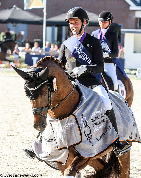 ERMELO, Netherlands, Aug. 5, 2018–The Hanoverian stallion d’Avie was ridden by Severo Jurado Lopez of Spain to World Breeding Six-Year-Old Championship gold with Villeneuve competed by Germany’s Laura Strobel taking silver and Hermes ridden by Dinja van Liere of the…