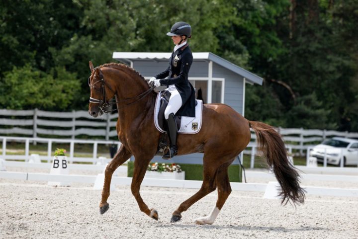 Nicolas Wagner Ehlinger of Luxembourg on Quater Back Junior post narrow victory in Zurich Masters CDI4* Grand Prix over Germany’s Lisa Müller on Gut Wettlkam’s D’avie…